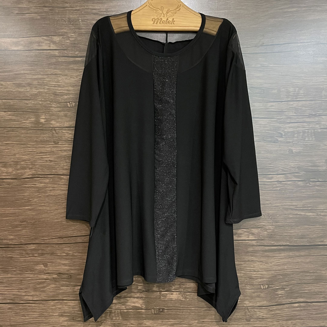 بلوز مجلسی یقه گرد توری آستین بلند دامن هلالی